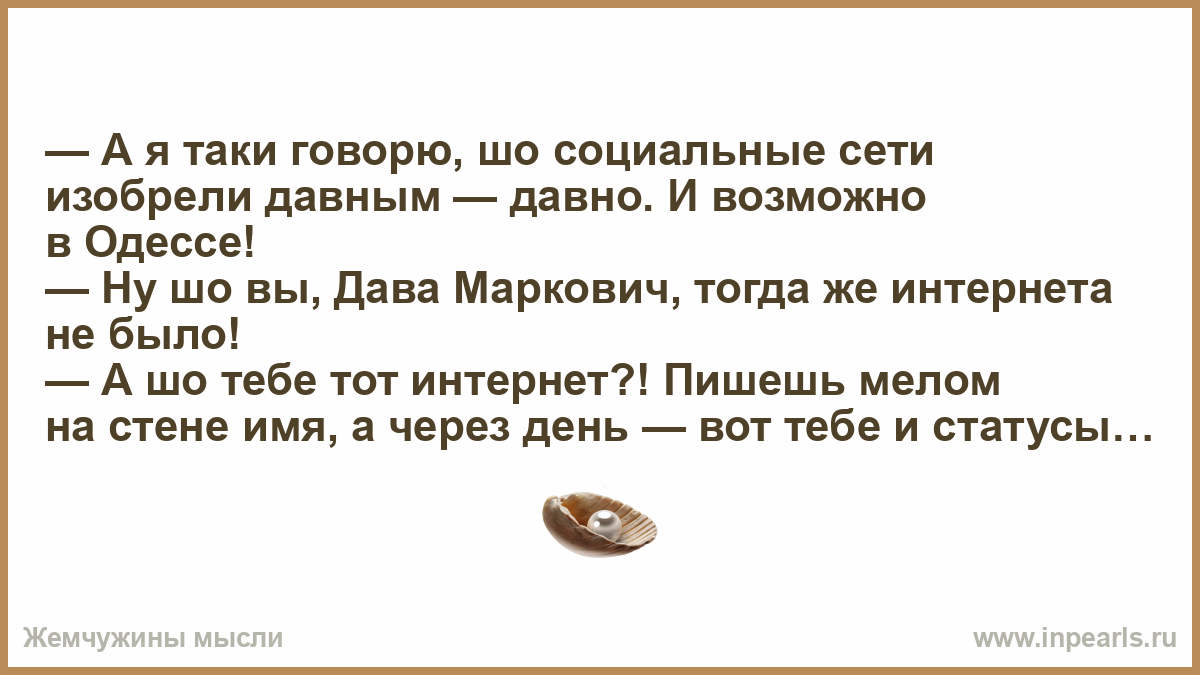 — А я таки говорю, шо социальные сети изобрели давным — давно. И возможно в Одессе!
