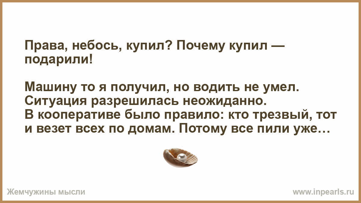 Права, небось, купил? Почему купил — подарили!