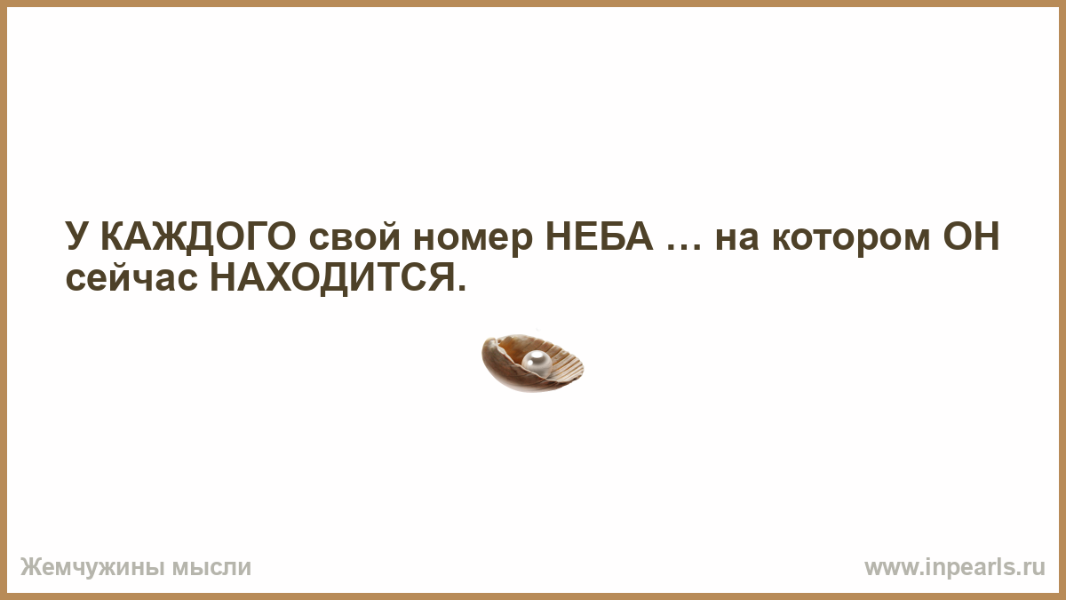У КАЖДОГО свой номер НЕБА … на котором ОН сейчас НАХОДИТСЯ.