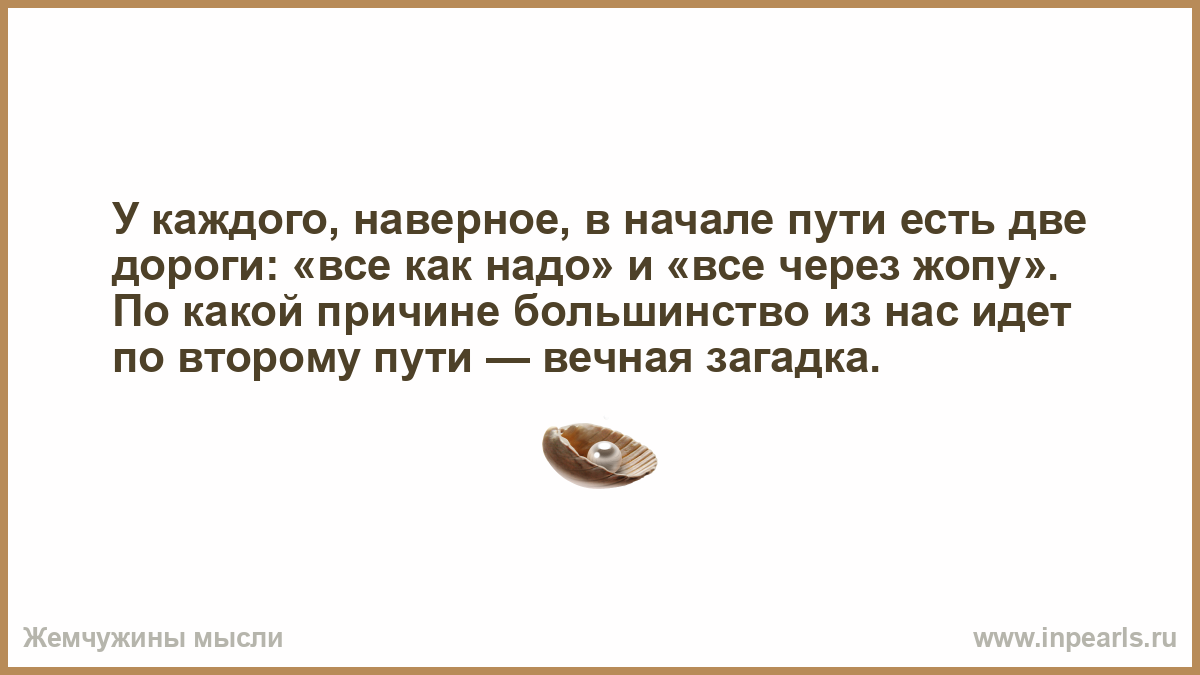 У каждого, наверное, в начале пути есть две дороги: «все как надо» и «все через жопу». По какой причине большинство из нас идет по второму пути — вечная загадка.