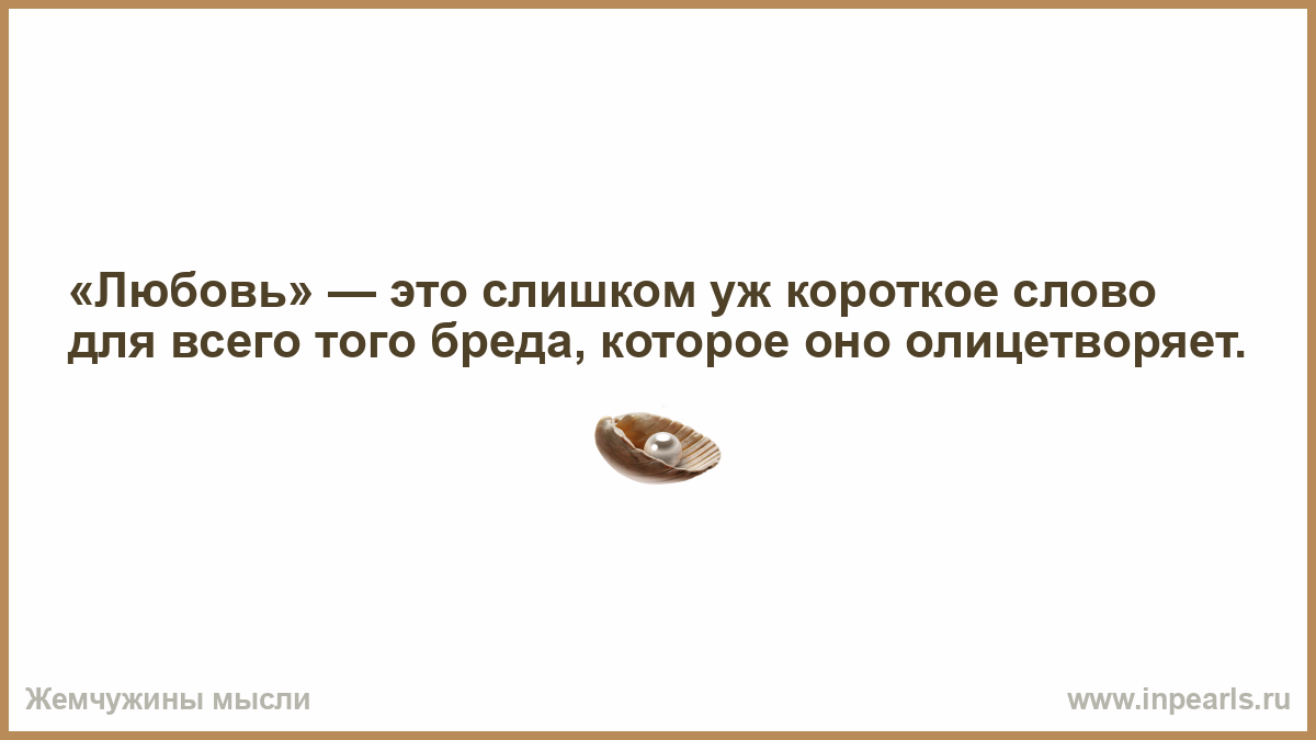«Любовь» — это слишком уж короткое слово для всего того бреда, которое оно олицетворяет.
