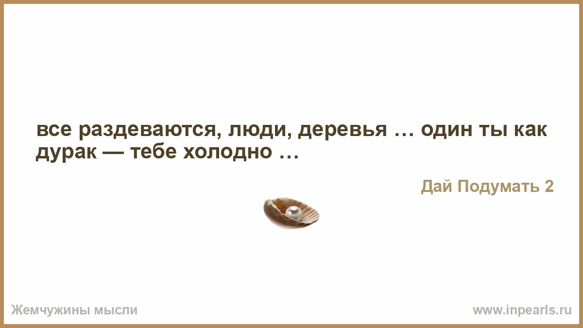 все раздеваются, люди, деревья … один ты как дурак — тебе холодно …