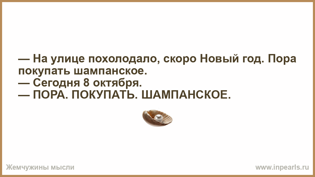 — На улице похолодало, скоро Новый год. Пора покупать шампанское.