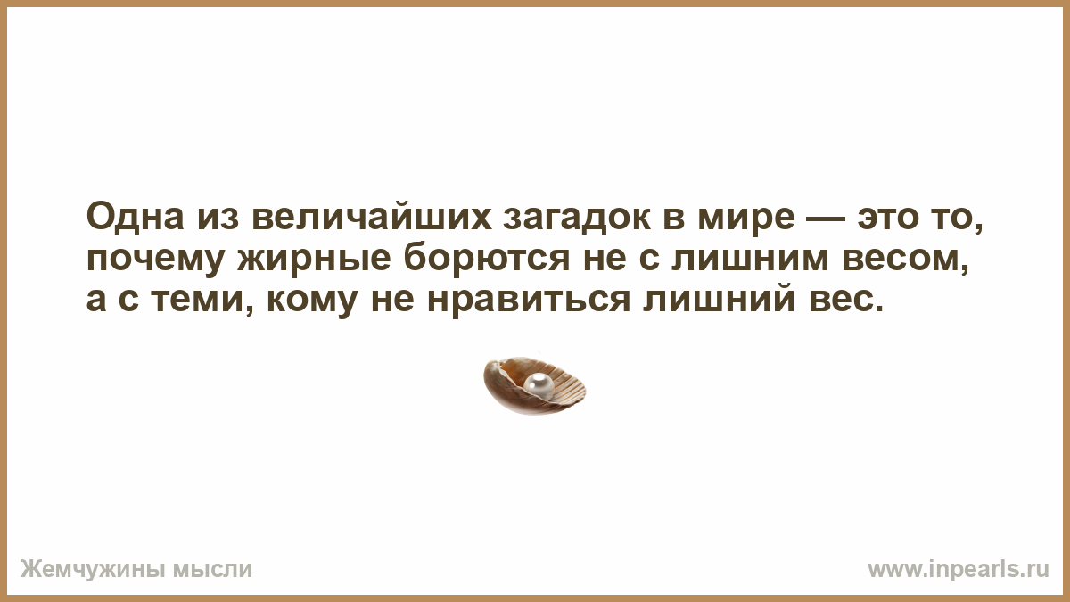 Одна из величайших загадок в мире — это то, почему жирные борются не с лишним весом, а с теми, кому не нравиться лишний вес.