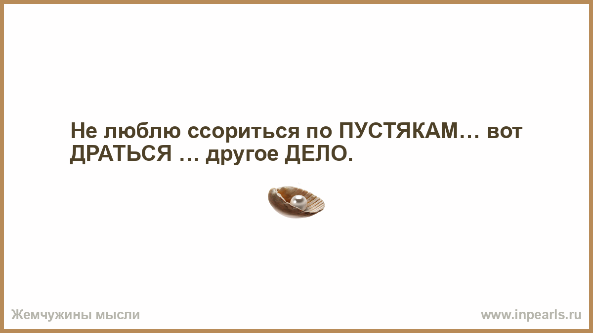 Не люблю ссориться по ПУСТЯКАМ… вот ДРАТЬСЯ … другое ДЕЛО.