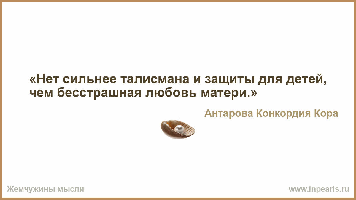 «Нет сильнее талисмана и защиты для детей, чем бесстрашная любовь матери.»