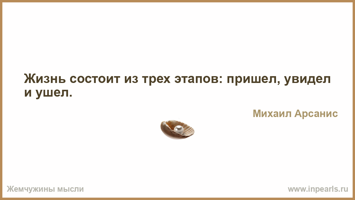 Жизнь состоит из трех этапов: пришел, увидел и ушел.