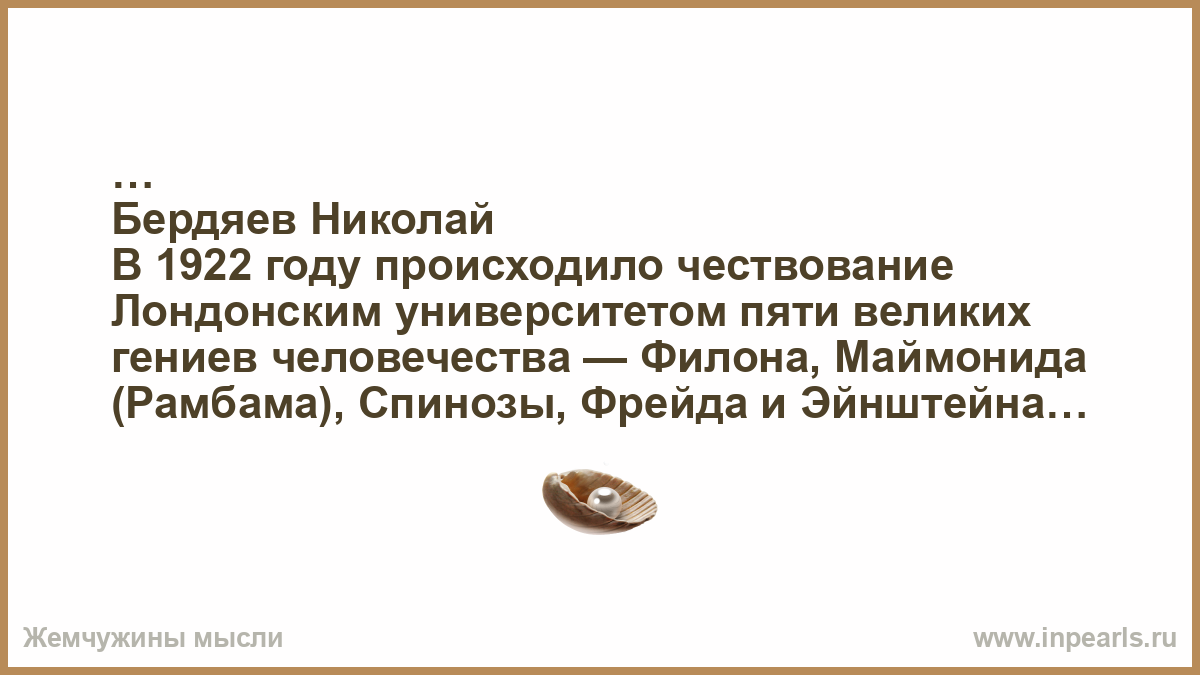 В 1922 году происходило чествование Лондонским университетом пяти великих гениев человечества — Филона, Маймонида (Рамбама), Спинозы, Фрейда и Эйнштейна.