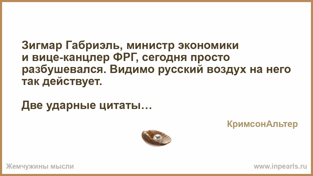 Зигмар Габриэль, министр экономики и вице-канцлер ФРГ, сегодня просто разбушевался. Видимо русский воздух на него так действует.