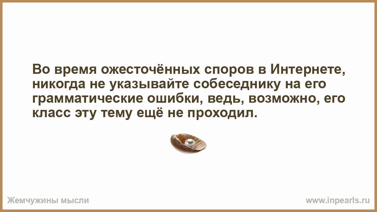 Во время ожесточённых споров в Интернете, никогда не указывайте собеседнику на его грамматические ошибки, ведь, возможно, его класс эту тему ещё не проходил.