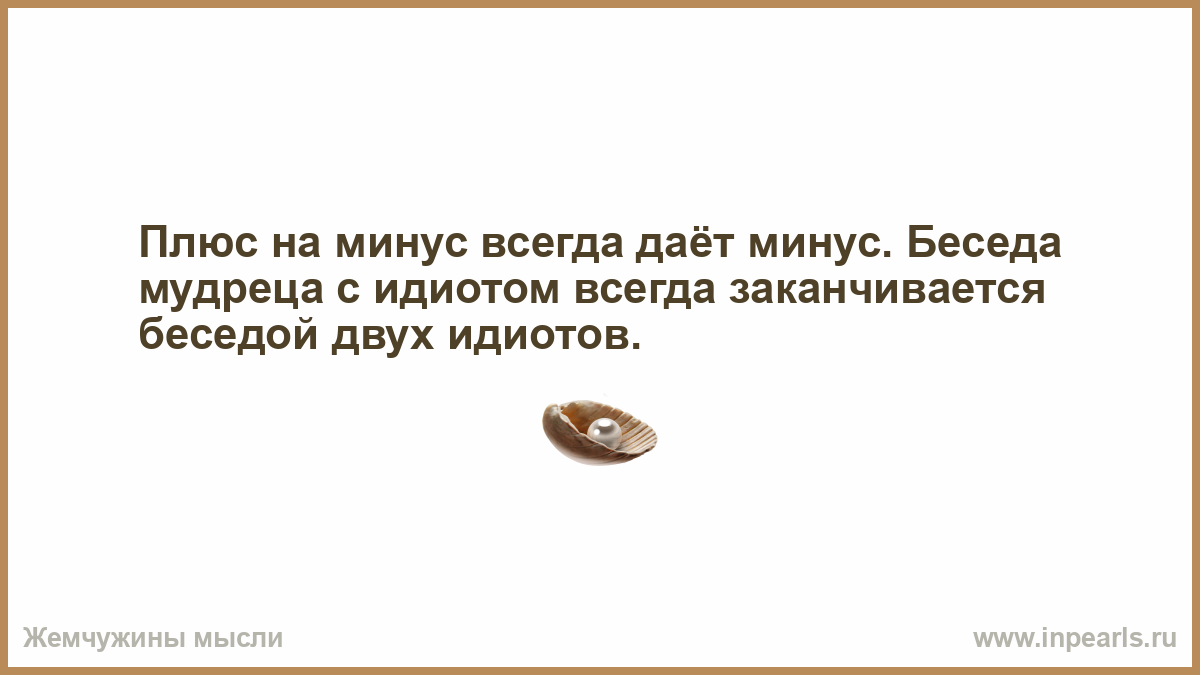 Плюс на минус всегда даёт минус. Беседа мудреца с идиотом всегда заканчивается беседой двух идиотов.