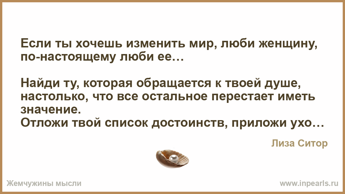 Если ты хочешь изменить мир, люби женщину, по-настоящему люби ее…