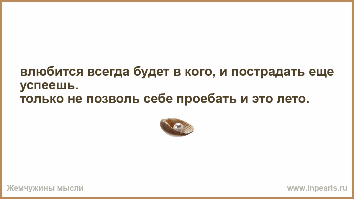 влюбится всегда будет в кого, и пострадать еще успеешь. только не позволь себе проебать и это лето.
