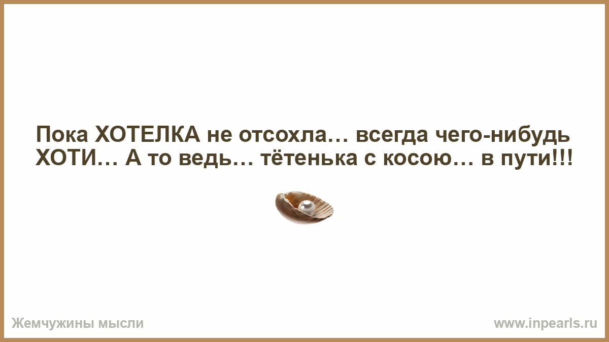 Пока ХОТЕЛКА не отсохла… всегда чего-нибудь ХОТИ… А то ведь… тётенька с косою… в пути!!!