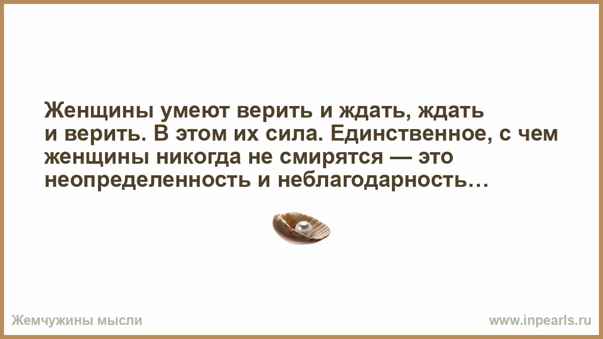 Женщины умеют верить и ждать, ждать и верить. В этом их сила. Единственное, с чем женщины никогда не смирятся — это неопределенность и неблагодарность…
