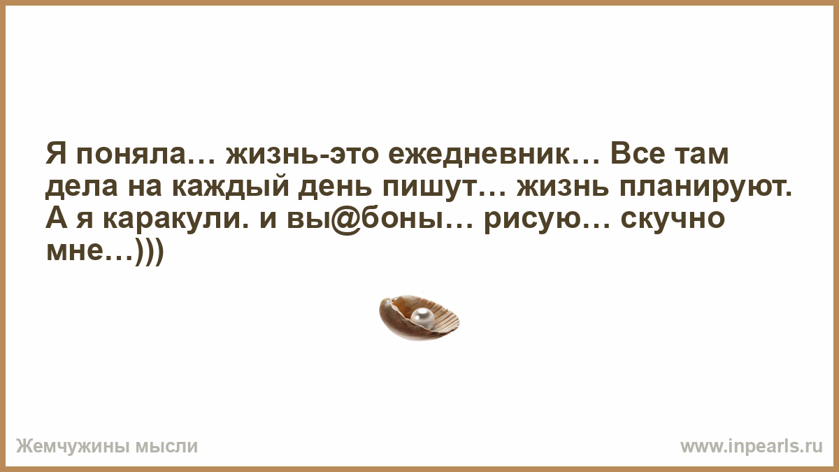 Я поняла… жизнь-это ежедневник… Все там дела на каждый день пишут… жизнь планируют. А я каракули. и вы@боны… рисую… скучно мне…)))