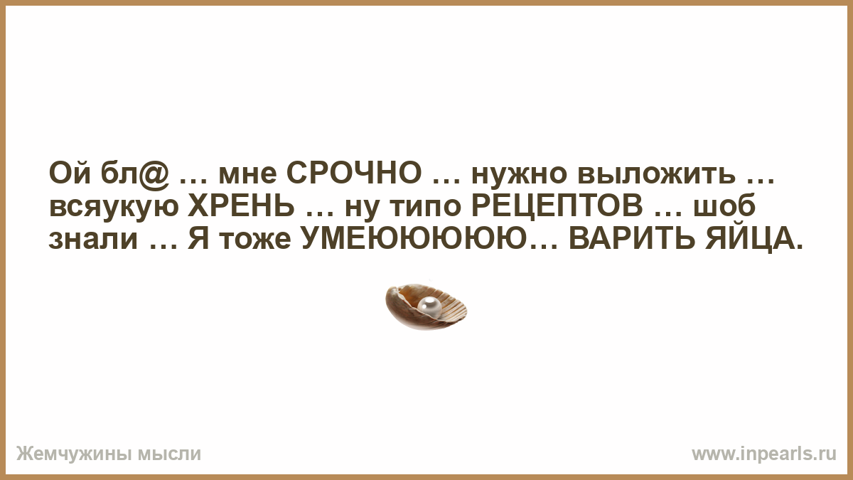 Ой бл@ … мне СРОЧНО … нужно выложить … всяукую ХРЕНЬ … ну типо РЕЦЕПТОВ … шоб знали … Я тоже УМЕЮЮЮЮЮ… ВАРИТЬ ЯЙЦА.
