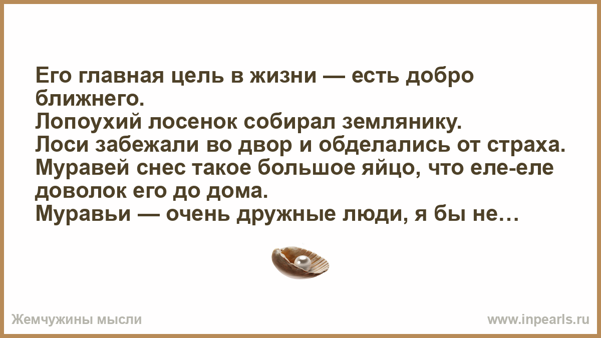 Его главная цель в жизни — есть добро ближнего.
