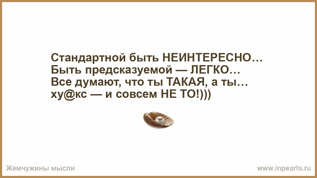 Стандартной быть НЕИНТЕРЕСНО… Быть предсказуемой — ЛЕГКО… Все думают, что ты ТАКАЯ, а ты… ху@кс — и совсем НЕ ТО!)))
