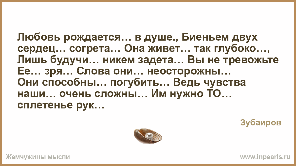 Любовь рождается… в душе., Биеньем двух сердец… согрета… Она живет… так глубоко…,