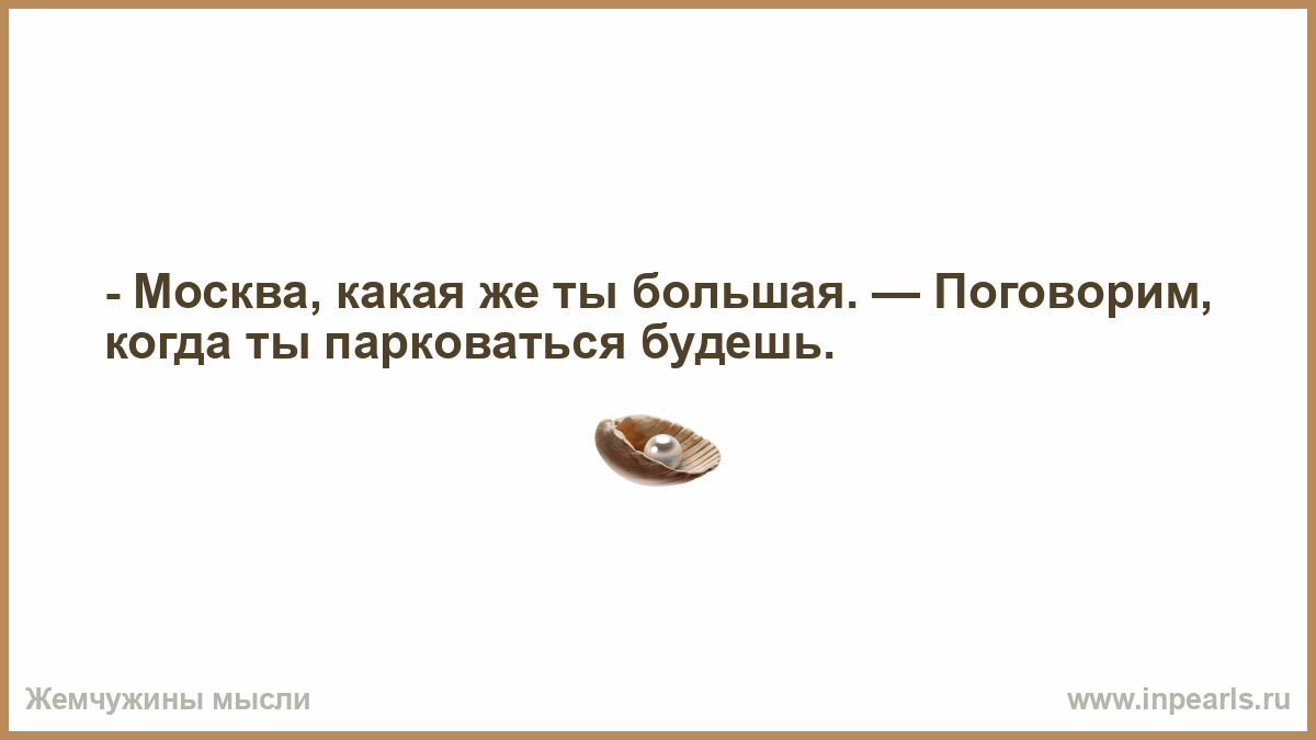 - Москва, какая же ты большая. — Поговорим, когда ты парковаться будешь.