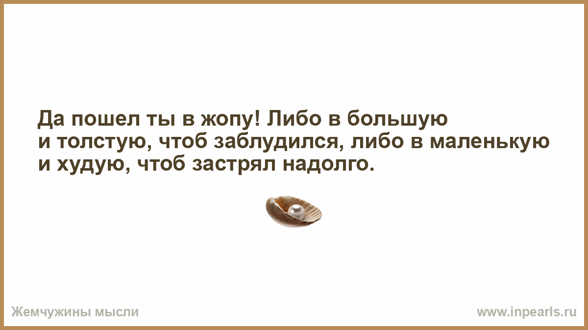 Да пошел ты в жопу! Либо в большую и толстую, чтоб заблудился, либо в маленькую и худую, чтоб застрял надолго.