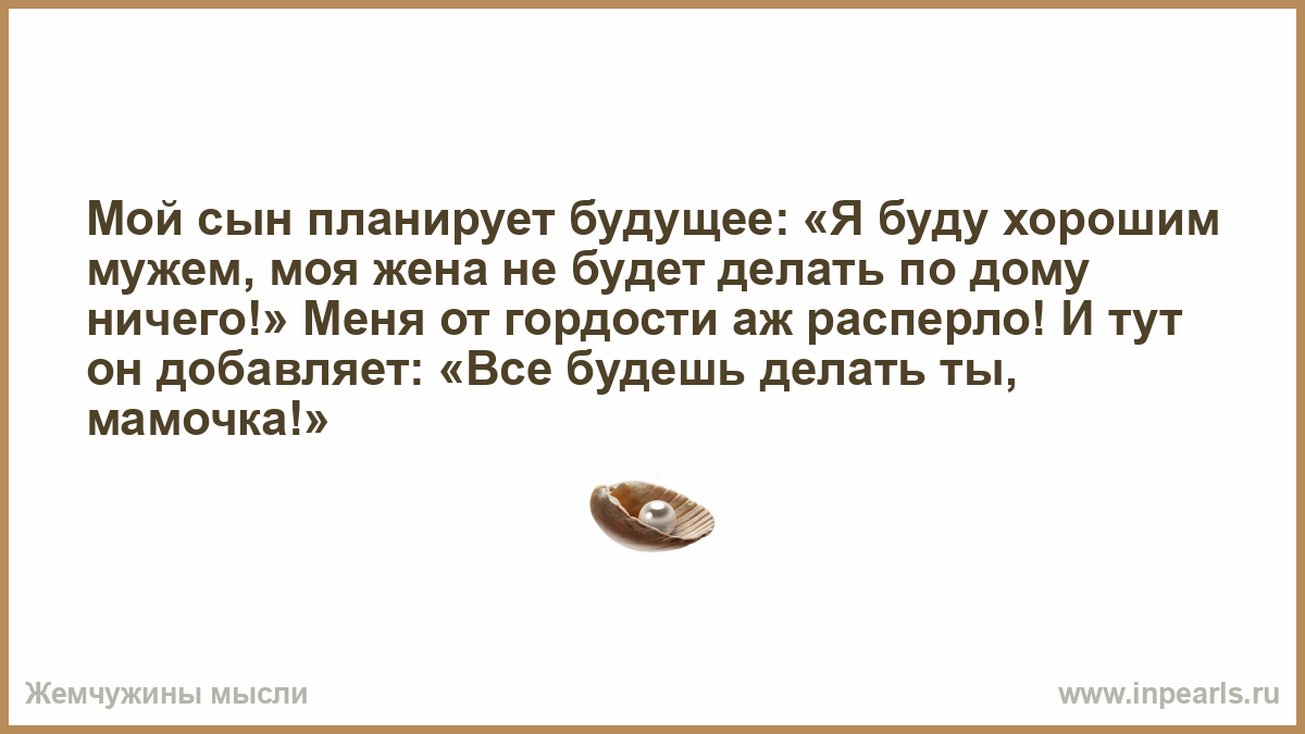 У меня молодая жена. Двое детей: дочка и сын. Я работаю на двух работах. Приезжаю поздно. И вот по какой-то причине я приехал чуть раньше, чем поздно, домой, а ужина нет. Жена стала суетиться, побежала в магазин, быстро что-то готовить. Хорошо, что я не очень привередлив к еде. Но последний кусочек я все-таки дал своей любимой попробовать! (Шутка, если что! Но мужчины поймут правильно.) Ее благодарности не было предела. Т. е. секс вечером был отличный. Но на следующий день все повторилось! Два —…