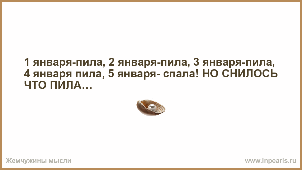 1 января-пила, 2 января-пила, 3 января-пила, 4 января пила, 5 января- спала! НО СНИЛОСЬ ЧТО ПИЛА…