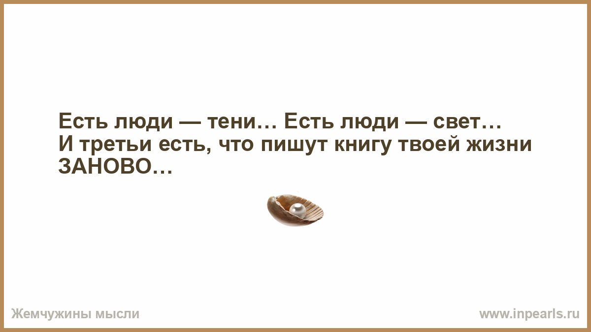 Есть люди — тени… Есть люди — свет… И третьи есть, что пишут книгу твоей жизни ЗАНОВО…