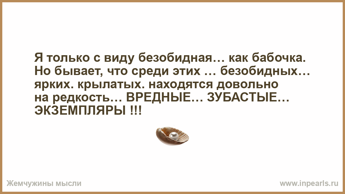 Я только с виду безобидная… как бабочка. Но бывает, что среди этих … безобидных… ярких. крылатых. находятся довольно на редкость… ВРЕДНЫЕ… ЗУБАСТЫЕ… ЭКЗЕМПЛЯРЫ !!!