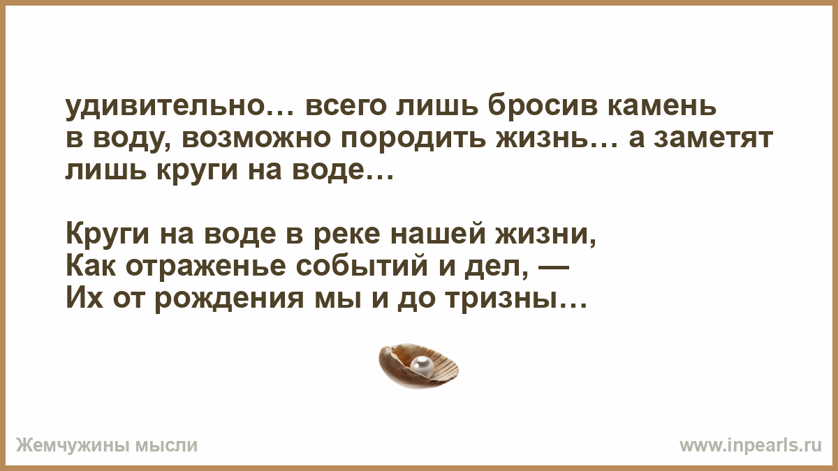 удивительно… всего лишь бросив камень в воду, возможно породить жизнь… а заметят лишь круги на воде…