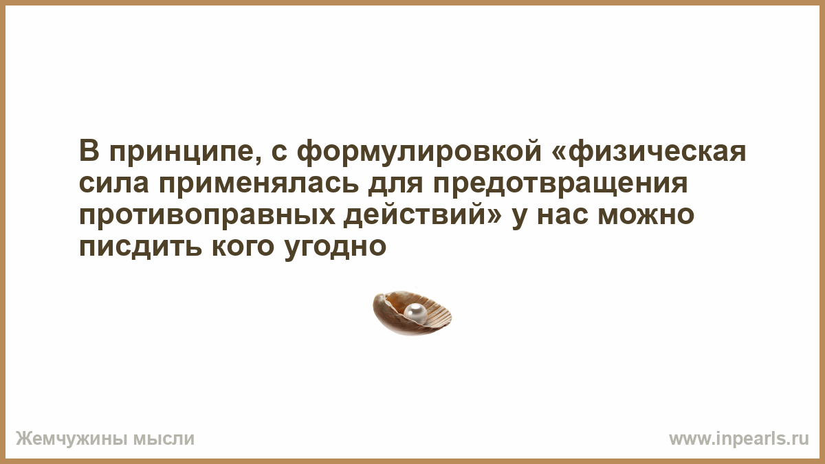 В принципе, с формулировкой «физическая сила применялась для предотвращения противоправных действий» у нас можно писдить кого угодно