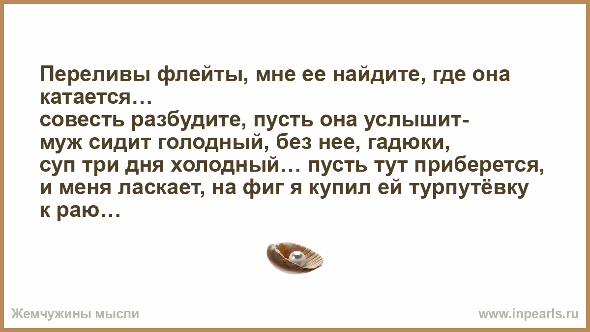и меня ласкает, на фиг я купил ей турпутёвку к раю…