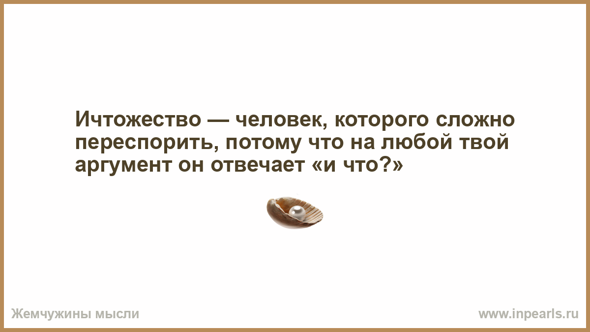 Ичтожество — человек, которого сложно переспорить, потому что на любой твой аргумент он отвечает «и что?»