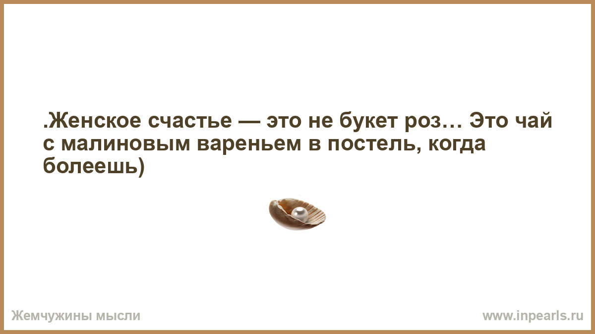 .Женское счастье — это не букет роз… Это чай с малиновым вареньем в постель, когда болеешь)