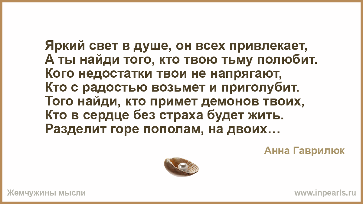 А ты найди того, кто твою тьму полюбит.