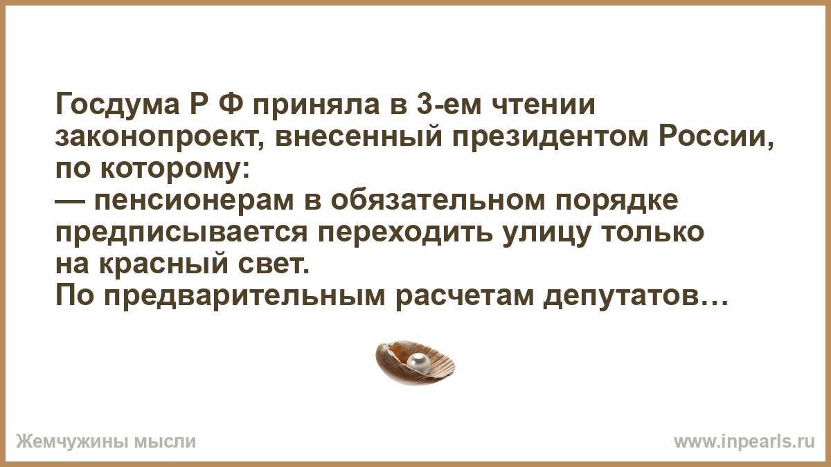 — пенсионерам в обязательном порядке предписывается переходить улицу только на красный свет.