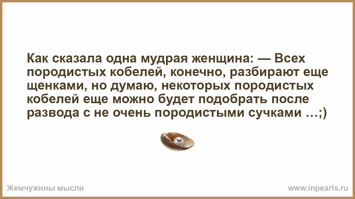 Как сказала одна мудрая женщина: — Всех породистых кобелей, конечно, разбирают еще щенками, но думаю, некоторых породистых кобелей еще можно будет подобрать после развода с не очень породистыми сучками …;)