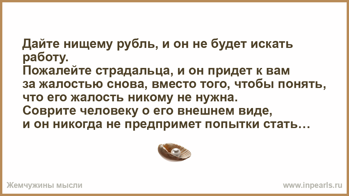 Пожалейте страдальца, и он придет к вам за жалостью снова, вместо того, чтобы понять, что его жалость никому не нужна.