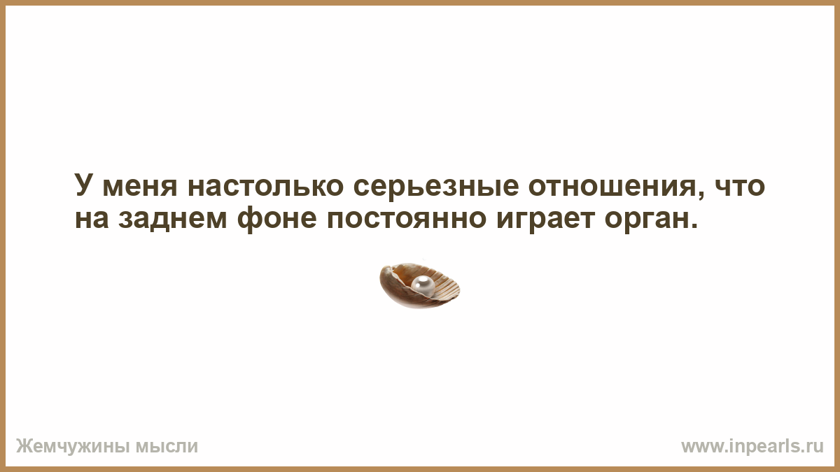 У меня настолько серьезные отношения, что на заднем фоне постоянно играет орган.