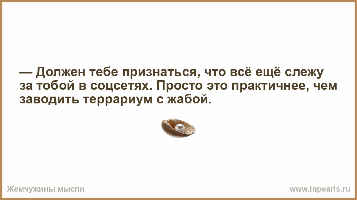 — Должен тебе признаться, что всё ещё слежу за тобой в соцсетях. Просто это практичнее, чем заводить террариум с жабой.