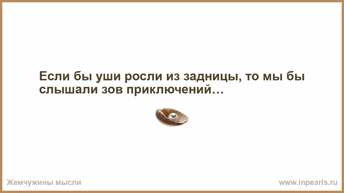 Если бы уши росли из задницы, то мы бы слышали зов приключений…