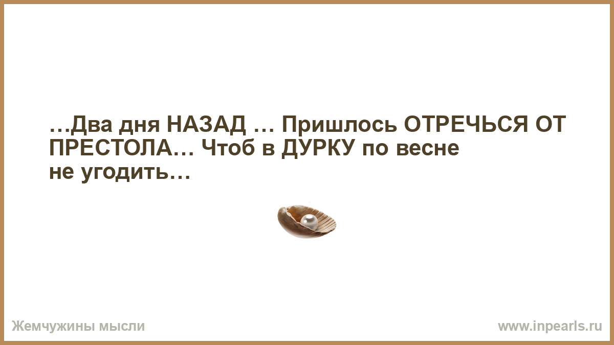 …Два дня НАЗАД … Пришлось ОТРЕЧЬСЯ ОТ ПРЕСТОЛА… Чтоб в ДУРКУ по весне не угодить…