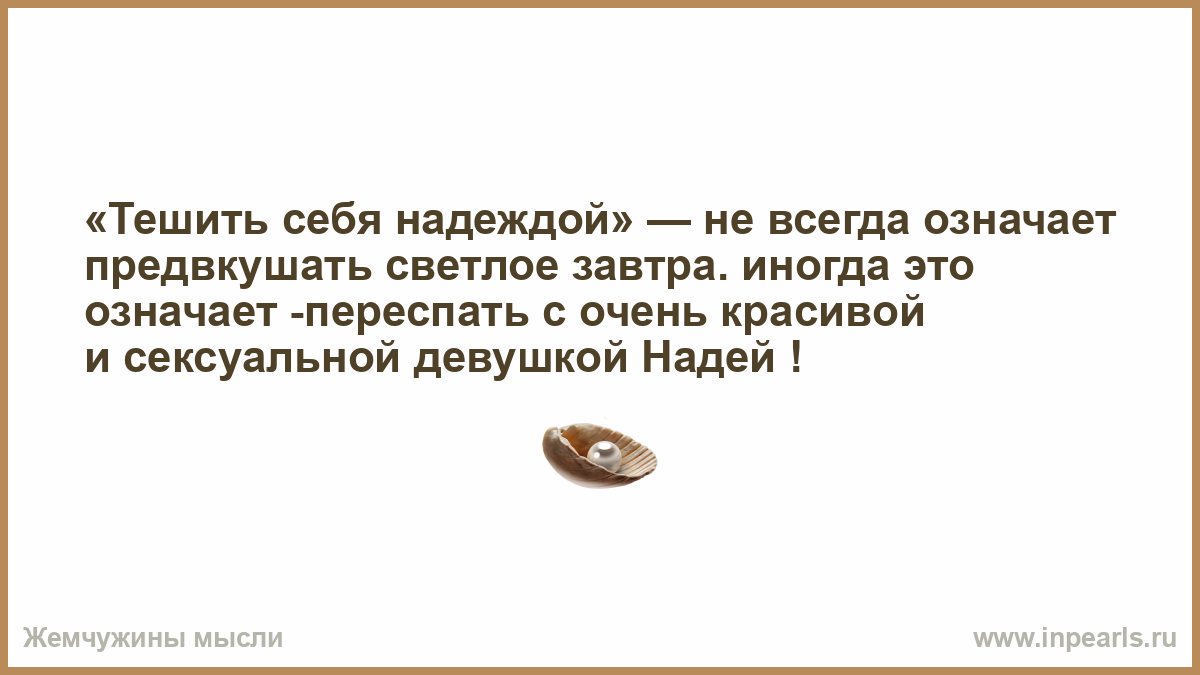 «Тешить себя надеждой» — не всегда означает предвкушать светлое завтра. иногда это означает -переспать с очень красивой и сексуальной девушкой Надей !