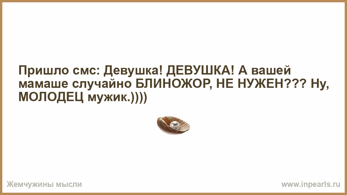 Пришло смс: Девушка! ДЕВУШКА! А вашей мамаше случайно БЛИНОЖОР, НЕ НУЖЕН??? Ну, МОЛОДЕЦ мужик.))))