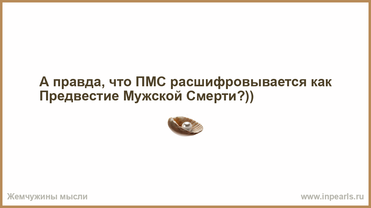 А правда, что ПМС расшифровывается как Предвестие Мужской Смерти?))