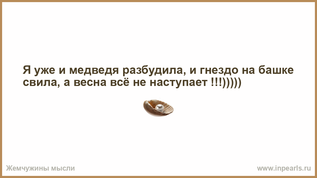 Я уже и медведя разбудила, и гнездо на башке свила, а весна всё не наступает !!!)))))