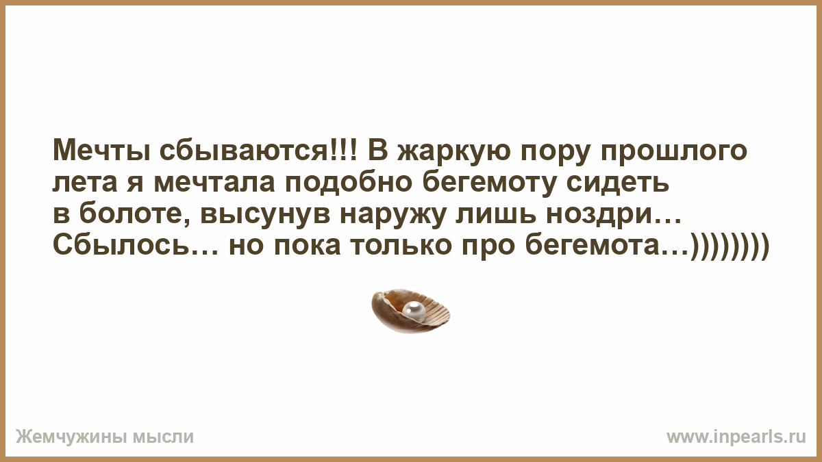 Мечты сбываются!!! В жаркую пору прошлого лета я мечтала подобно бегемоту сидеть в болоте, высунув наружу лишь ноздри… Сбылось… но пока только про бегемота…))))))))