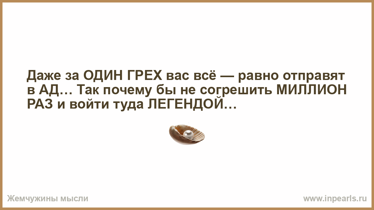 Даже за ОДИН ГРЕХ вас всё — равно отправят в АД… Так почему бы не согрешить МИЛЛИОН РАЗ и войти туда ЛЕГЕНДОЙ…