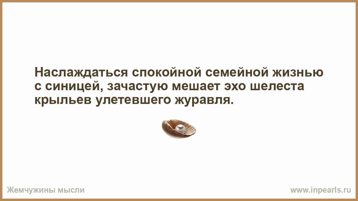 Наслаждаться спокойной семейной жизнью с синицей, зачастую мешает эхо шелеста крыльев улетевшего журавля.